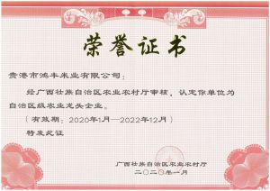 貴港市市鴻貴港豐米業有限公司成立于2001年,位于貴港市西江產業園區創新路,是一家集糧食生產、收購、儲存、加工、銷售運輸為一體的民營企業,公司自有經營工業用地120畝,其中:貴港市鴻豐米業30畝,貝龍兒分公司60畝,廣西鴻豐米業(欽州)30畝。目前企業資產總額11298萬元,建成糧食儲存倉容量4.8萬噸,安裝先進設備精米生產線3條,年加工能力10萬噸,年產品銷售收入超億元,公司建立12895畝優質稻種植基地,其中富硒香稻3000畝,企業獲: “全國放心糧油示范加工企業”“自治區農業產業化重點龍頭......[ 查看更多 ]